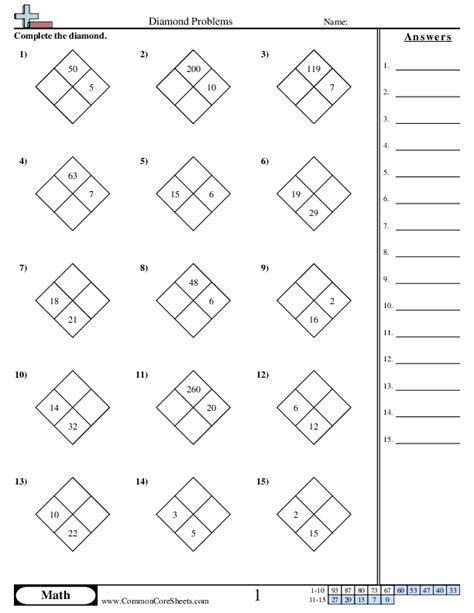 Web worksheets are diamond problems, shapes work learning learning diamondsdiamondsdiamonds, kindergarten shapes work, factoring trinomials a 1 date. Web this is a full sheet of diamond problems. Web the ' math diamond problems worksheet bundle' consists of 9 pages including 3 worksheet sets with answers!